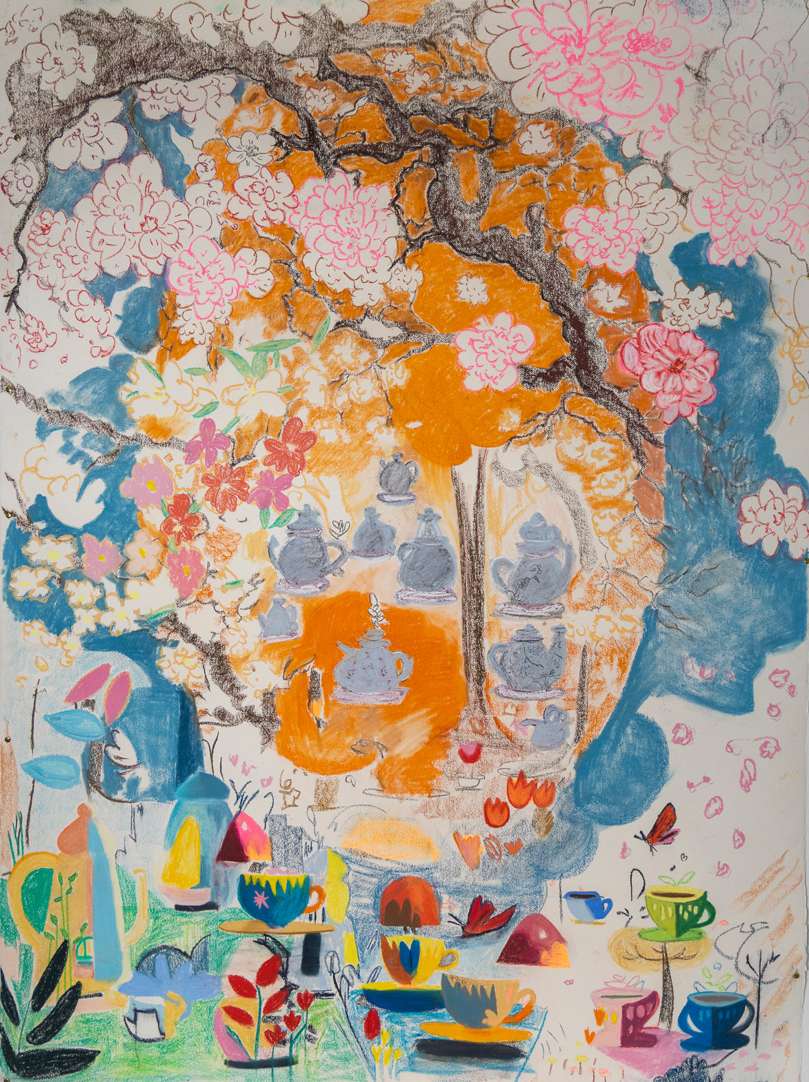 Soft Pastels sealed on ripped paper.